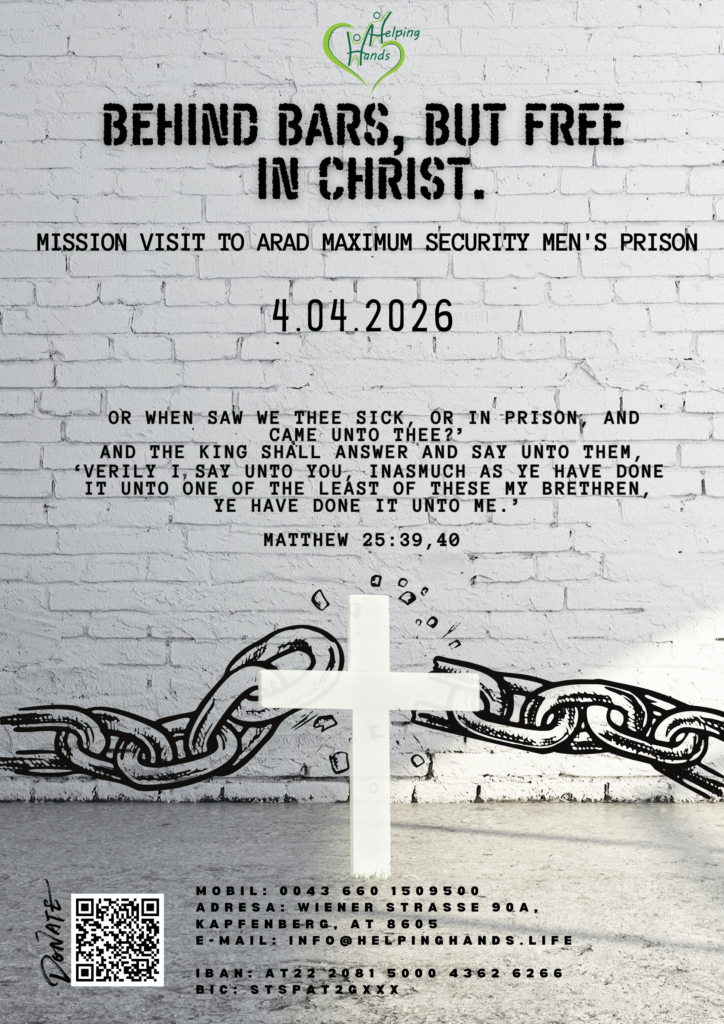 This Easter season, on April 4, 2026, the Helping Hands team will visit the Arad Men’s Penitentiary to spend time with approximately 100 inmates.